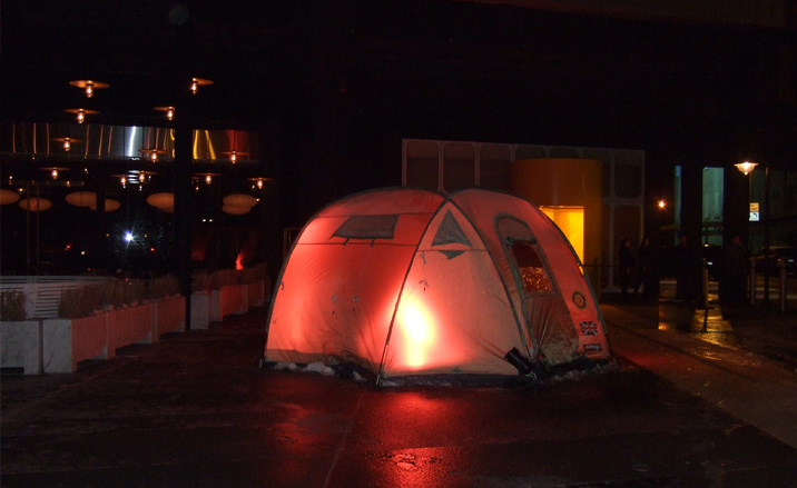 "Taking a little walk after dinner and I found these tents a few blocks further."