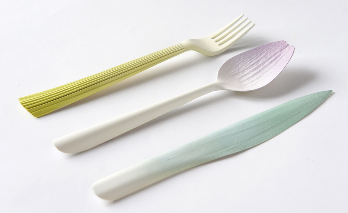 The Graft series of disposable tableware is moulded in bioplastic to resemble fresh produce and tinted in palatable pastel colours. In a twist on conventional plastic dinnerware, each piece in the Graft set takes on a natural form of fruit or vegetable - from celery to radicchio, lemon to melon - which serves as a reminder of the material's ability to break down after use. cargocollective.com/qiyun