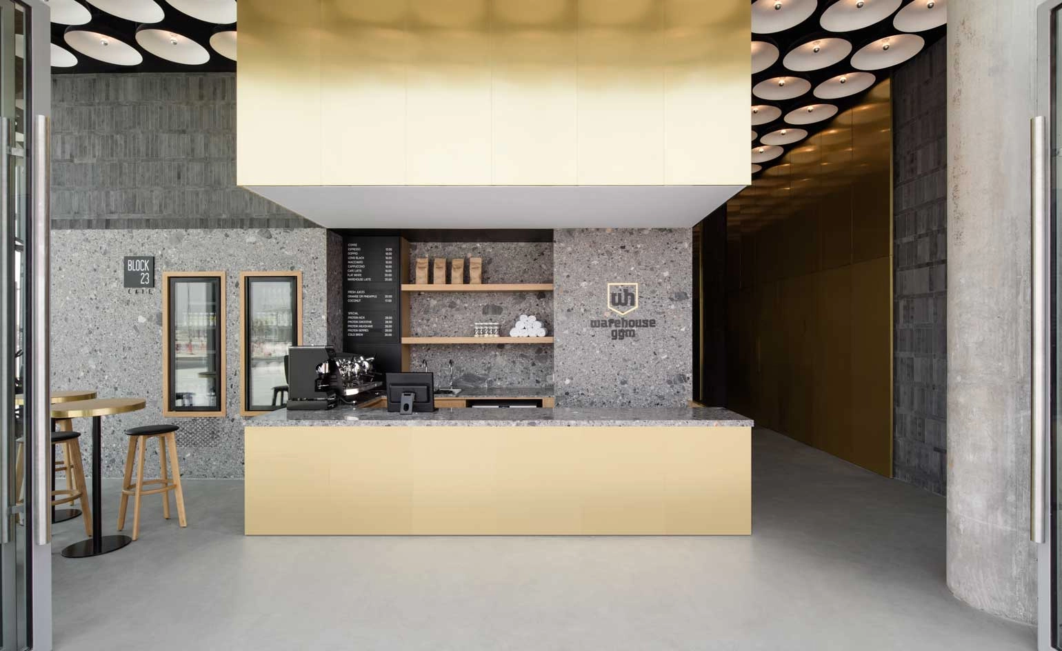 The interiors architects – VSHD Design, led by Rania Hamed – aimed to appeal to ‘the design savvy community’, and took their queues from brutalism, using locally cured concrete bricks and flooring, resilient to heavy use. The whole space, clad in this atmopsheric grey, will develop an appealing patina over time. Accents of gold-hued copper add a voguish polish, while a 17m long glass window invites visitors in from The Block – the adjacent recreational facility featuring a skate park and basketball court.
