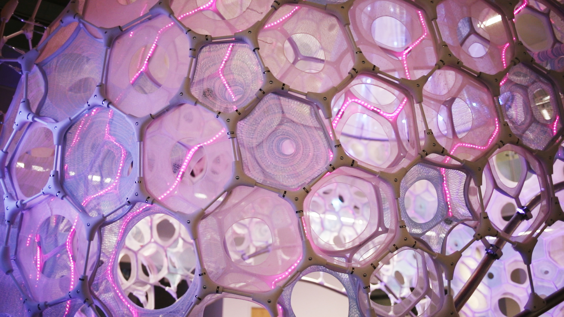 Jenny Sabin’s brainy AI sculpture learns to smile at Microsoft HQ