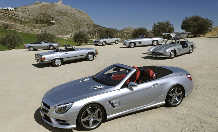 In order to cement this impression of effortless ability and aristocratic lineage, the company's Classic division laid on a fleet of old-school SLs, dating back from the 1950s right up to the 1990s