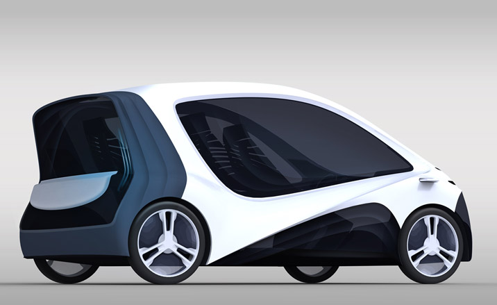 Symbiosis explores the possibilities of connecting architecture and transportation to form an energy efficient living system. Inspired by architecture, the four-seater vehicle is restructured as a multilayered system consisting of three main parts: the interior cabin, supporting framework and the exterior skin. While piezoelectric crystals, integrated in the framework, create energy from airflow between the layers of the vehicle, the exterior skin of the car collects energy from sunlight.