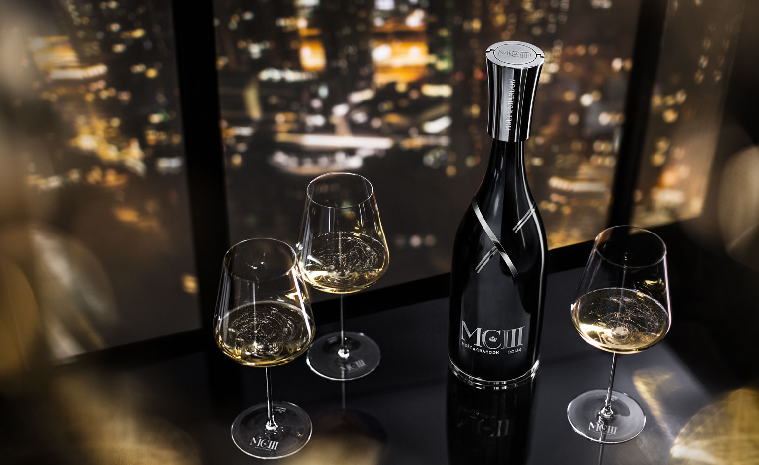 MCIII is an amalgamation of still wines and champagnes from the Grand Vintage Collections, presented in a futuristic black glass bottle