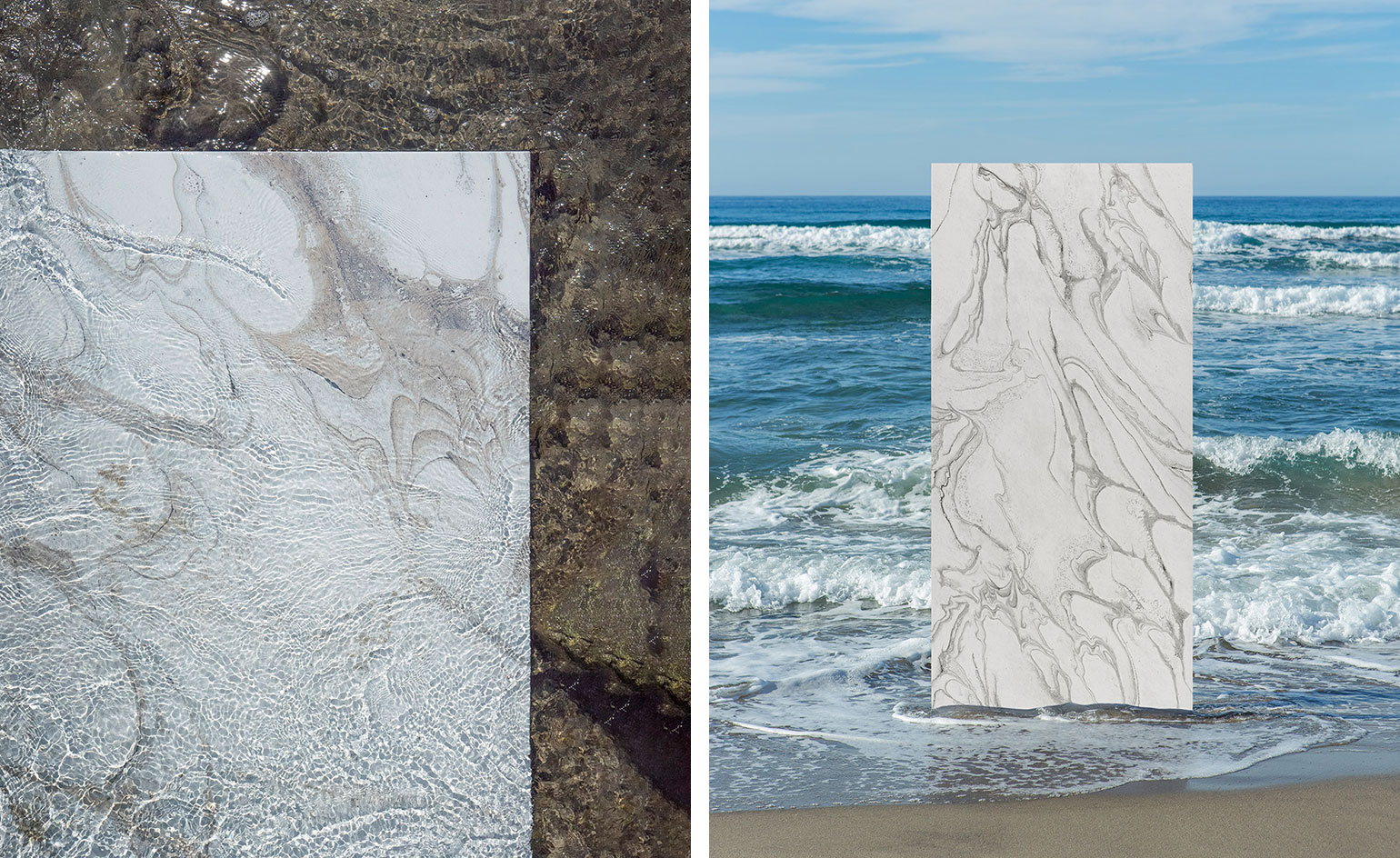 Inspired by the different states of liquid, Patternity and Cosentino realise The Liquid Collection, three subtly marbled designs printed on ultra-compact large format surfaces that will be shown at Design Miami