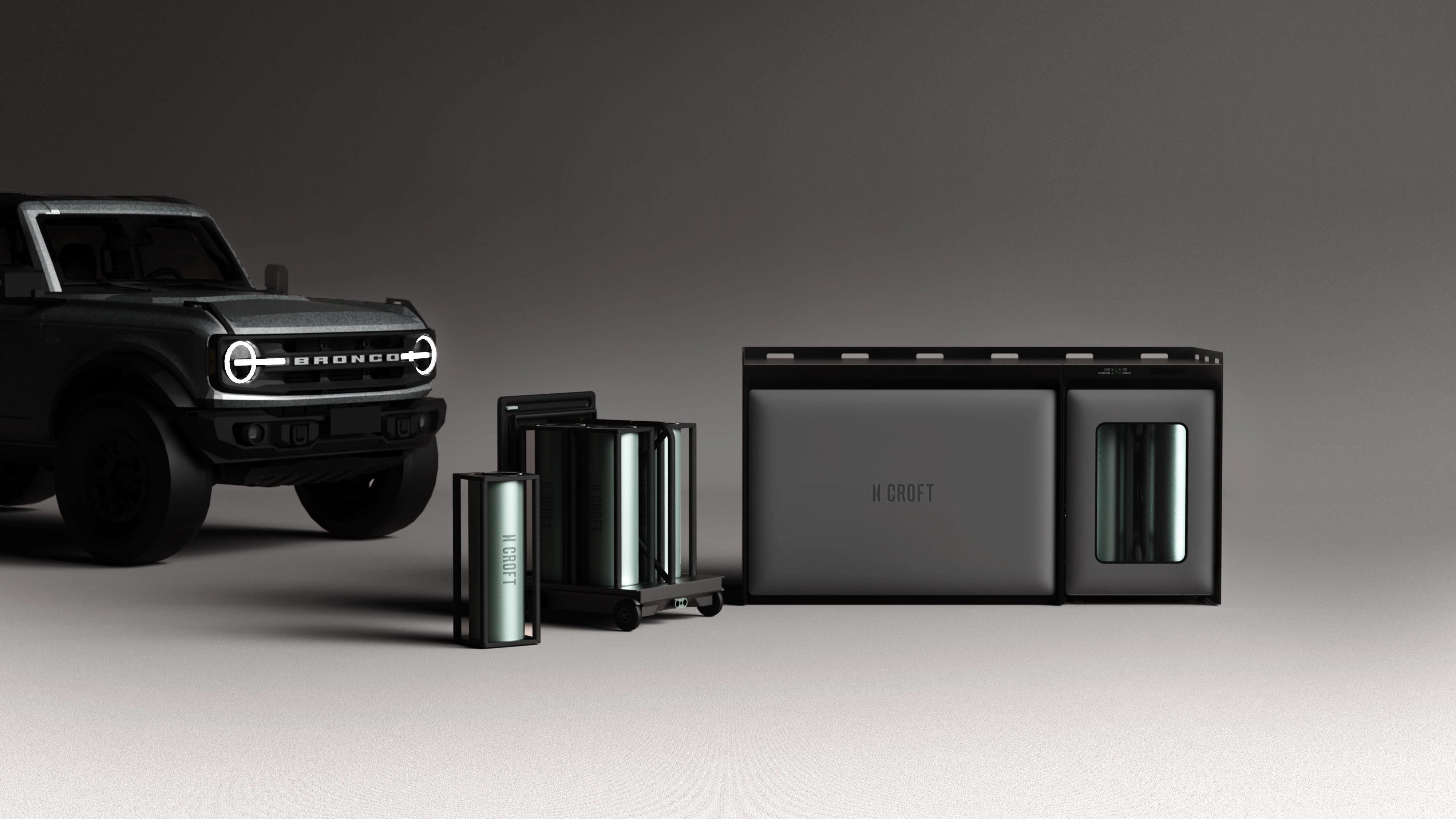 ‘Working with Croft has allowed us to flex our design, engineering, and branding teams to create a holistic system that has the potential to fundamentally improve the way people travel and consume energy,’ says Hubert. The intention is for Croft to supply hydrogen generation to owners of retrofitted vehicles, be they SUVs or light trucks, with the cartridge system used to massively increase their range and functionality.