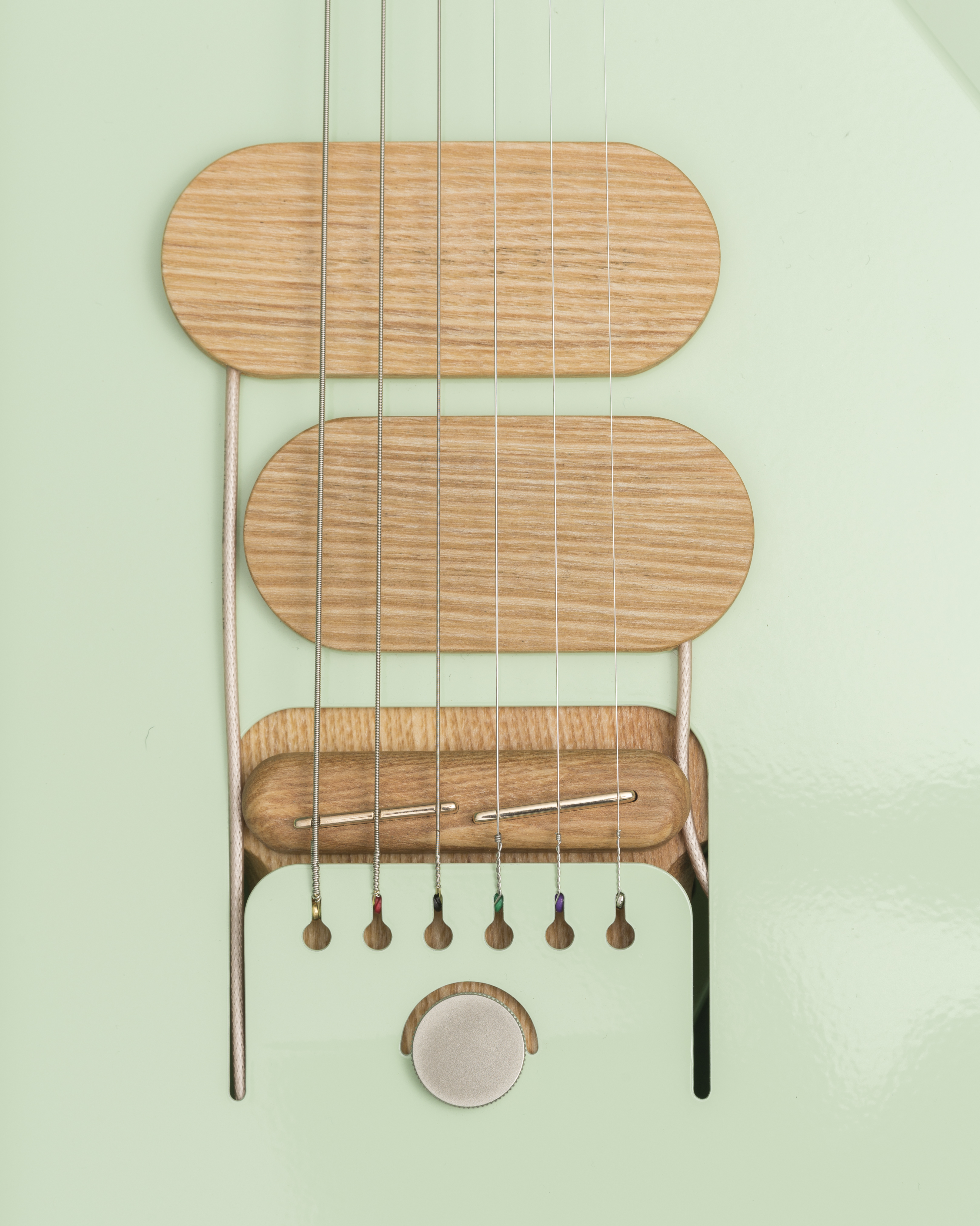 The form is utterly dictated by the function. ‘The simplest electric guitar basically requires only a rod on which strings are tensioned,’ Stummvoll explains. ‘I was very inspired by the guitars of Allan Gittler (held in the MoMA design collection), German luthier Ulrich Teuffel, and the one-string Solitaire model by Nobuaki Hayashi.’