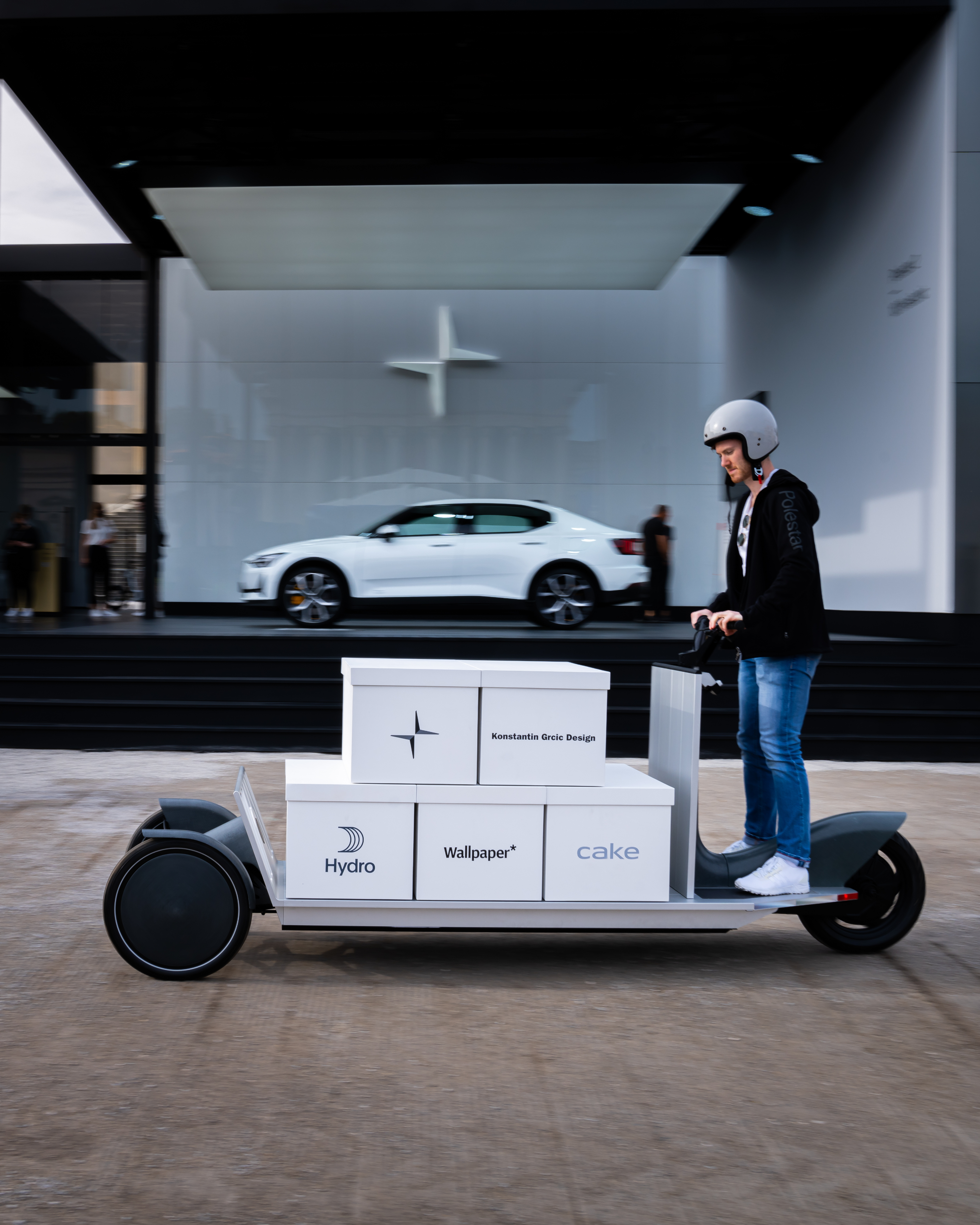 Polestar showed a working prototype of the Re:Move concept, developed out of our very own Re-Made series in collaboration with Konstantin Grcic and Hydro. The slim, 750mm electric transporter is designed for urban centres, capable of taking up to 180kg of cargo through bike lanes. Polestar describes it as a ‘new vehicle category’, and it typifies the continuous stream of smart thinking coming out the brand. Another collaboration on display was a new version of CAKE’s Makka bike. The Makka – Polestar edition by CAKE is designed to be mounted on a Polestar 2 car, with an integrated charger that tops up the bike battery as you travel to your destination, before it becomes the ultimate last mile commuter or adventure bike.