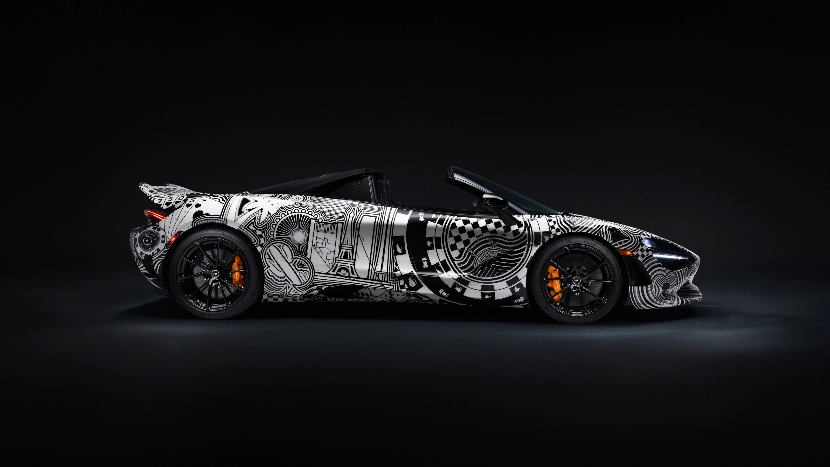 With body art that contains a veritable basket of Easter Eggs, we can’t hand on heart call the Project Viva an aesthetic success, especially as the 750S starts life as a very beautiful, purist kind of supercar. The scattering of gambling and race-related imagery covers every square inch of the complex carbon fibre surfacing, from dice to cards, the race grid to the roulette table. There are also plenty of nods to the city’s history and identity, as well as the signatures of McLaren’s F1 drivers and nods to the team’s many successes.