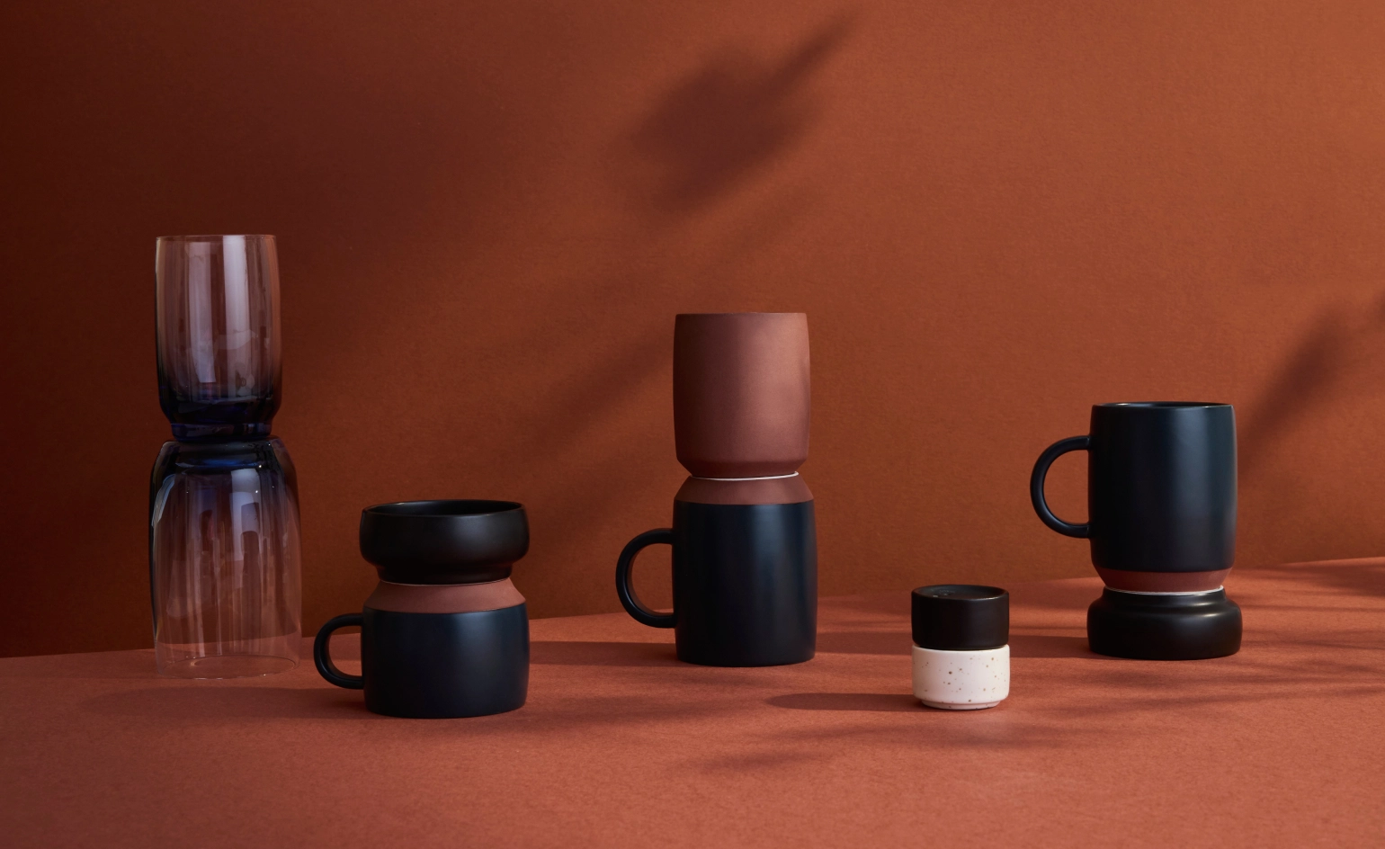 ‘We developed a clear design language, including a subtle sculptural plinth, which allows the pieces to nest efficiently,’ says Newterritory’s Nadja Orwell. Even the salt and pepper shakers are stackable, and the plates are shallower, again helping to make them lighter and more compact.