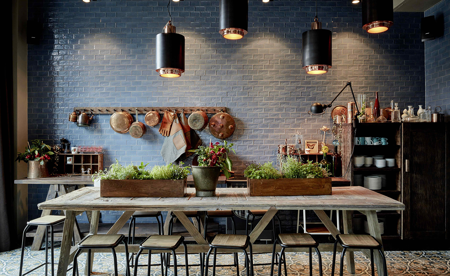 Located in the city’s new Le Quarter Central, a sprawling 360,000 square metre mini-metropolis in the former freight railway station, the 198-room property is the work of Swedish studio Stylt Trampoli, whose idea of ‘German engineering and French artistic flair’ is expressed in black steel staircases, a kitchen styled like a French country-house, timber parquet floors and four-poster beds in the bedrooms, and a reception inspired by the city’s electropop group Kraftwerk.