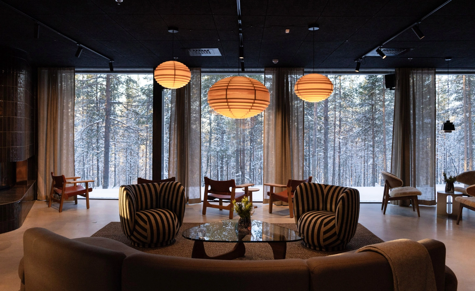 Sitting on the edge of Urho Kekkonen National Park, Galdu Hotel & Spa is an all-year-round retreat inspired by Lapland’s nature and tranquillity. Finnish architect Pekka Mäki conceived the hotel’s traditional log-framed design and gave each of the 31 rooms and suites floor-to-ceiling windows to maximise the Arctic light and landscape views. Each has been nearly entirely dressed with pared-back Scandinavian furnishings, although there is a smattering of ‘Japandi’-style pieces which combine Japanese minimalism with the functionality of Scandinavian design. The on-site restaurant highlights Lappish cuisine and local produce; here you can hunker down in front of a cosy fireside bar for winter days. Another sanctuary is the spa, with three saunas, a warm pool, an outdoor jacuzzi, and, for the brave, a cold plunge.