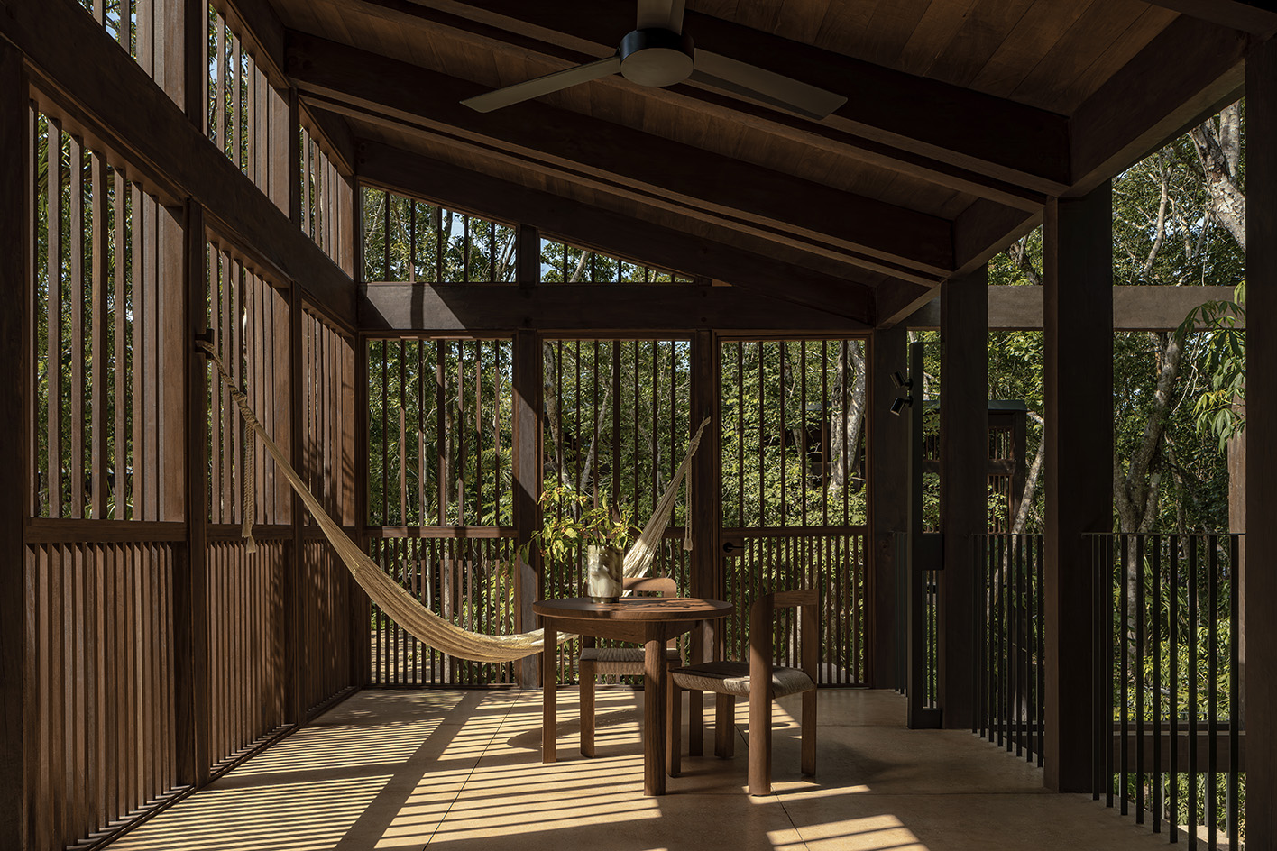 Ensuring staffing and programming on site engage local small businesses and emerging professionals from underrepresented groups is another part of the hotel’s mission. This goal extends to the design, whose sustainable architecture is defined by an Escobedo staple – latticework. It is a feature that allows for both natural ventilation and shade, while wrapping the spaces in an artisanal and handmade feel. It also anchors the project to its site through the use of timber and local labour and construction techniques, despite its modern forms.