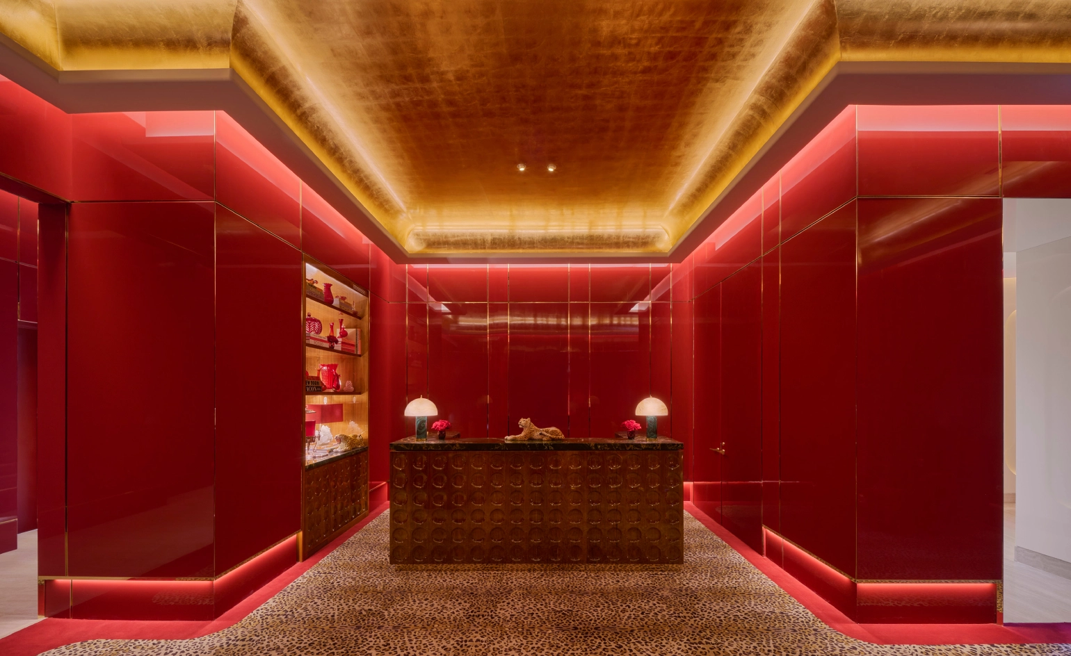 Faena New York rises within a striking high-rise designed by Bjarke Ingels Group. The interiors are even more captivating. Led by Alan Faena and the Faena Design Team, in collaboration with Peter Mikic, the vivid vision comes to life through larger-than-life artwork, rich colour (lots of red, gold and black) and animal prints. The entry, referred to as ‘the Cathedral,’ looks more like a chic gallery than a hotel reception, with Argentine artist Diego Gravinese's enormous mural Ascension, A Sephirotic Journey covering the soaring walls and a gilded spiral staircase in the middle of it all. Throughout the hotel, art plays a important role, with the cosmic symbolism of creation as a recurring theme. A forthcoming theatre – a Faena-fied twist on Old Hollywood – will take centre stage with pieces by Andres Resinger and cabaret performances when it opens next summer.