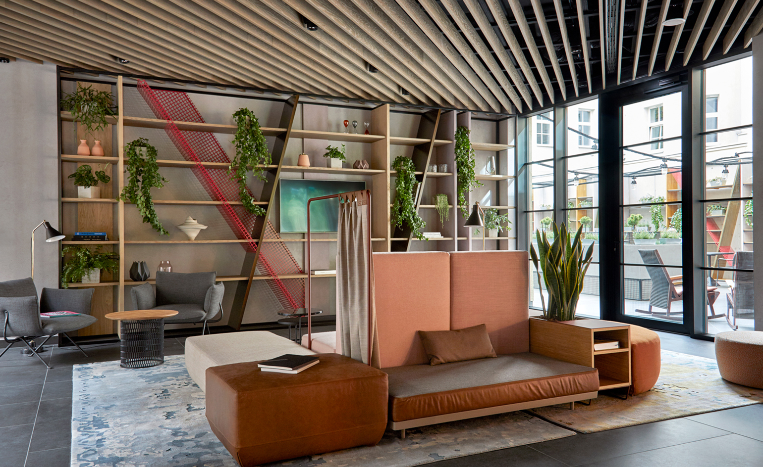 Amidst the roll-call of bold-faced furnishings and fixtures by the likes of Fritz Hansen, Gubi, &Tradition and Moroso, local artists proudly fly the Polish flag with Nawer contributing an eye-catching graffiti mural and Mateusz Szczypiński adding two modernist collages to the lobby.