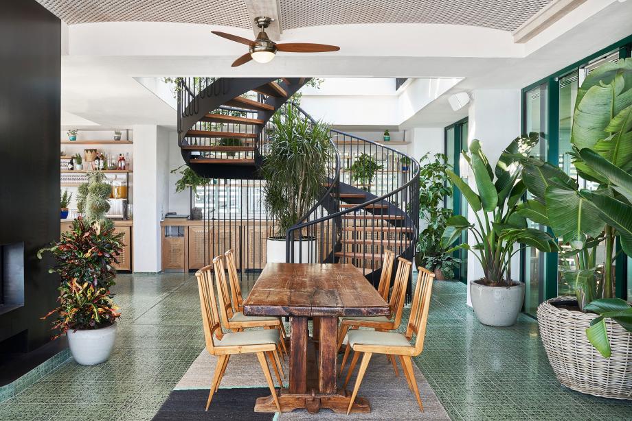 Built on the sands in the 1950s before Spain’s stricter coastal zoning laws came into effect, this hotel has been rundown and visibly neglected for decades, although it was still appreciated by some for views of the sea, so close you could cast a rod from the rooms’ balconies at high tide. The original split-level layout of the hotel has not been altered, and continues to offer 17 rooms and two outdoor terraces, with an additional rooftop terrace currently being assembled. Soho House’s design team has worked magic with the décor, weaving a luxurious, vintage-tinged ambience with a wide range of natural local materials – rattan, timber, hessian and Moroccan tiles – in colours that sway from sage green to sunny yellow.