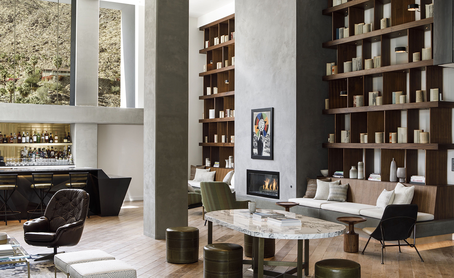 With 11 new or upcoming properties in the works, The Kimpton Hotel and Restaurant Group continues to expand at an astonishing rate. It’s newest opening is just one more example of its talent for sniffing out prime locations in happening neighbourhoods. Against a muscular backdrop of the San Jacinto mountains and just steps from the Palm Springs Art Museum, the 153-room Rowan is contained within a modern seven-storey new build, by West Coast firms ACRM Architects + Interiors and DesignARC, that is the crowning glory of Downtown Palm Springs’ decade-long regeneration project.