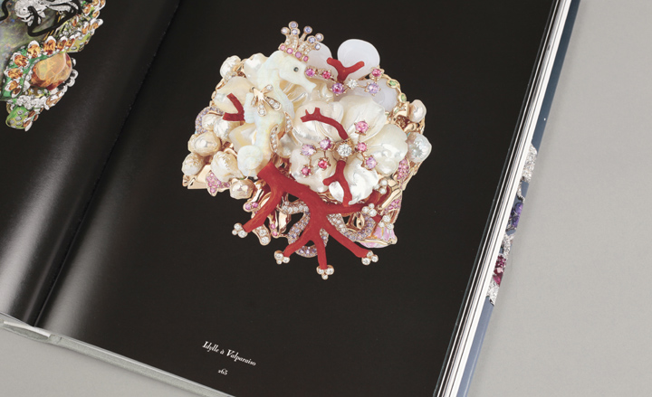 The Idylle à Valparaiso brooch is a cluster of seahorses, pearls, coral, mother-of-pearl, diamonds, white opal, pink spinel, lacquer and more