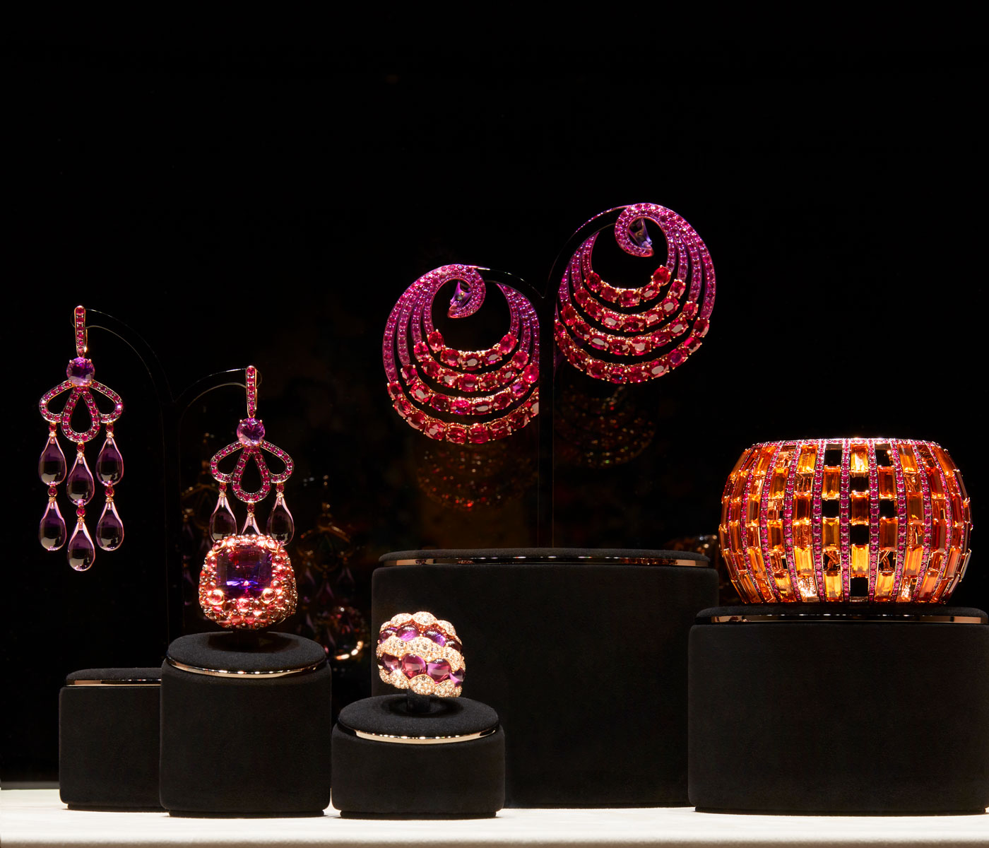 Colour rules for fine jeweller Fawaz Gruosi, whose bold jewels subvert traditional jewellery codes. His love of texture, vibrant hues and Art Deco-inspired design accents has been reflected in his new Berkeley Square boutique in London.