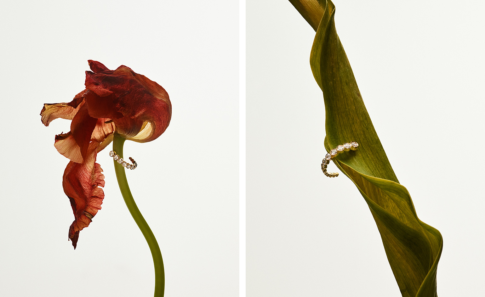 ‘For me, flowers represent new beginnings,’ says Bille Brahe, ‘and this collection is a fresh start. It’s more “classic”, using larger diamonds – with my own twist, of course.’ Her gold-set flowers are reminiscent of Robert Mapplethorpe’s poised Y series, or the horticultural prints of German nature photographer Karl Blossfeldt.