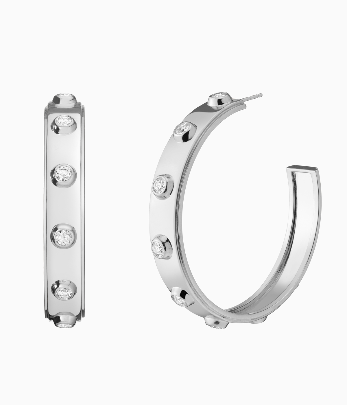 The jewellery that follows, including chic alternative engagement rings, encompasses strong architectural forms, with unexpected diamond placements and strong silhouettes making for modern pieces.