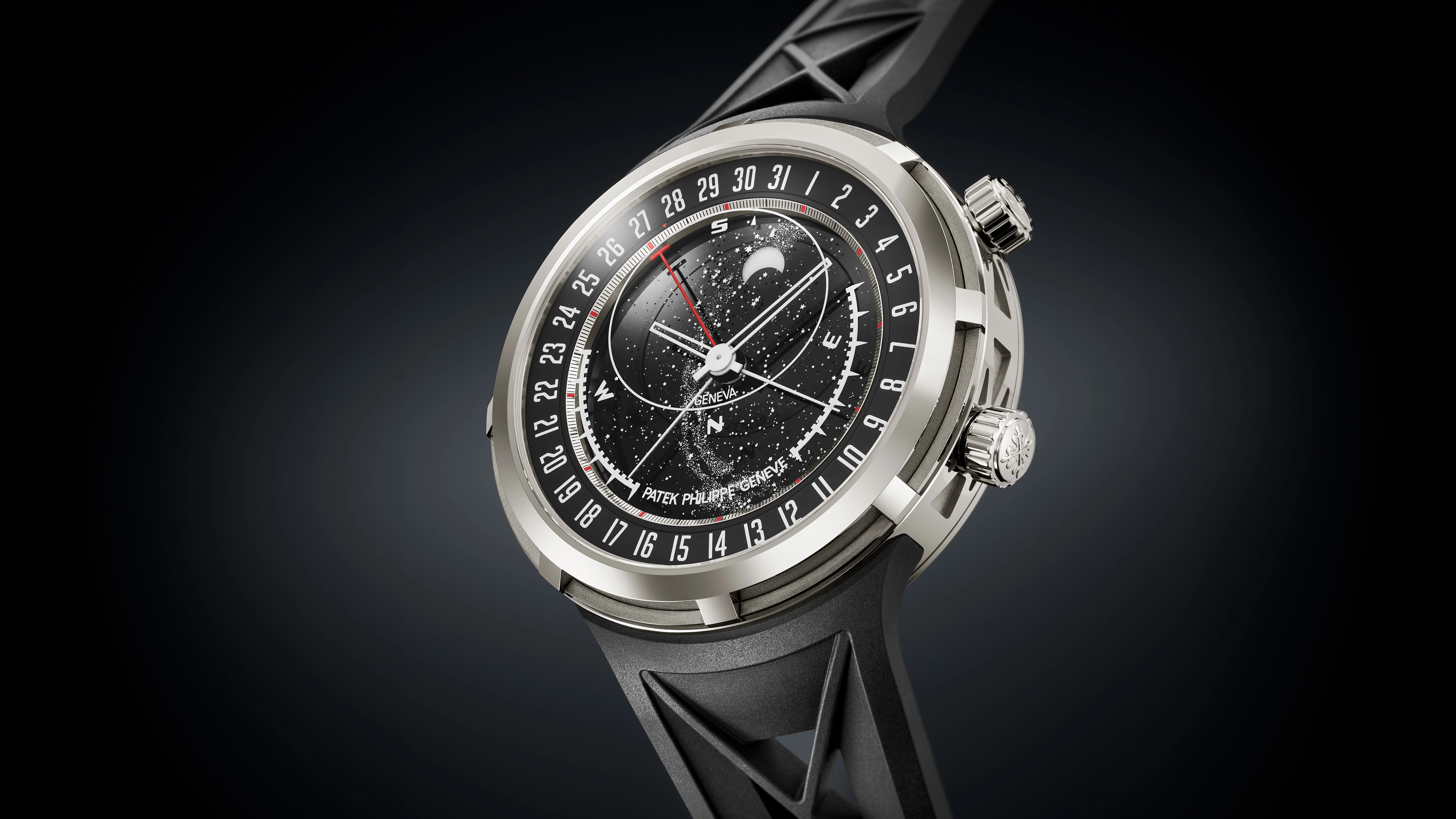 Patek’s headliner of 2026 is a technical first: a wristwatch that displays the times of sunrise and sunset, housed in a 47mm white-gold case with a dial charting the Geneva night sky. The movement features a patented system that simultaneously corrects the time and sunrise/sunset indications whenever the clocks change.